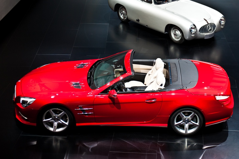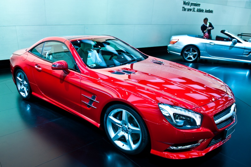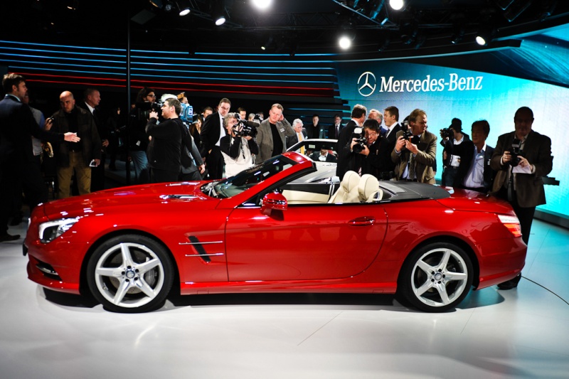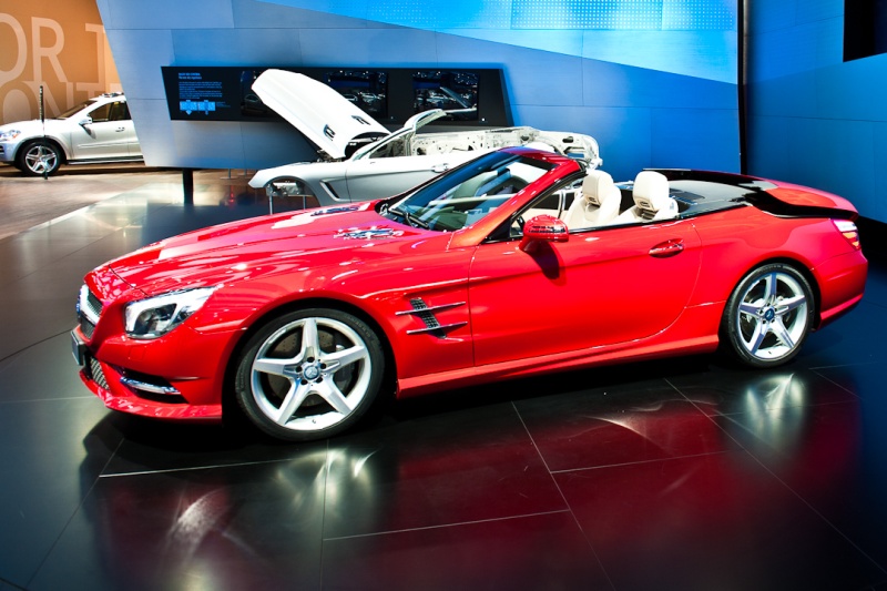 Zunächst aber eines vorweg: Daimler hat dem Modellvorgänger „R 230“ rund 160.000x zwischen 2001-2011 verkauft. Wenn wir als Durchschnittspreis 75.000 € annehmen, hat Daimler mit diesem Modell rund 12 Mrd. Euro Umsatz gemacht. Insgesamt hat Daimler sei Einführung des SL anno 1957 rund 700.000 Einheiten verkaufen können. Übertragen auf das neue Modell und bei einer ähnlichen Laufzeit, bietet sich Daimler mit dem „R 231“ eine Umsatzchance von ca. 10 Mrd Euro. Eher noch höher, da die kommenden Absatzmärkte wie Brasilien, China, Indien und Russland nach derartigen Modellen gieren. Man möchte ja zeigen, was man hat. Nur um einmal die Dimensionen klarzumachen, von denen wir bei der Einführung von neuen Modellen im Premiumsegment sprechen.
