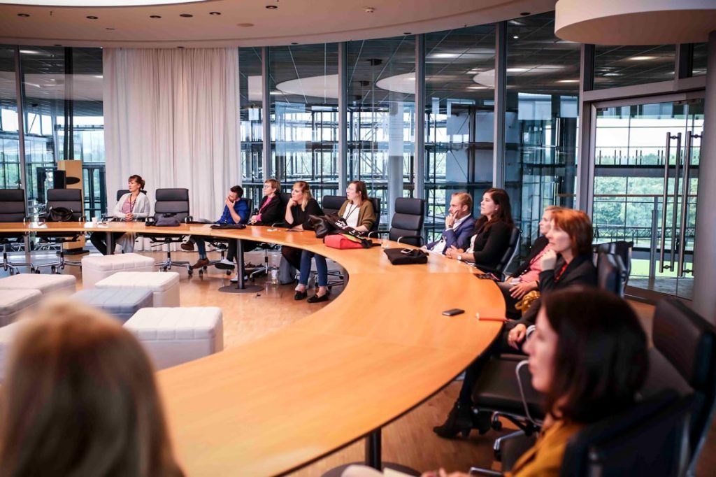Nächsten Morgen ging es dann rüber zur Gläsernen Manufaktur von VW, die ihren Gebäudekomplex für die Veranstaltung – was mein eigentlicher Reiseanlass war – zur Verfügung gestellt hatten. Gläserne was? Volkswagen lässt dort seit April 2017 den e-Golf zusammenbauen. Weitere e-Modelle sind im Plan, wie Autokenner wissen. Die Veranstaltung – das Ziel meiner Reise – nennt sich „bsen – das Onliner-Event“ und fand zum zweiten Mal nach 2016 statt, zum ersten Mal bei VW in deren Manufaktur. Der Hauptorganisator und Vorantreiber ist Peter Stawowy (zusammen mit der Sächsischen Landesanstalt für privaten Rundfunk und neue Medien, kurz SLM), der zugleich das Magazin Flurfunk herausgibt. Der Mann mit dem Mikro: